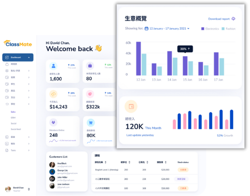 適合各類型的學習中心 強大的系統涵蓋多種功能,切合不同的業務需要 預約免費示範 適合的業務類型 補習社:英文、數學、中文等學術補習中心,管理考試班及功課輔導。英語學習中心:Phonics、會話、寫作及考級課程,支援網上報名及家長查詢。音樂中心:鋼琴、結他、小提琴教室,處理樂器班時間表及師資排班。藝術及舞蹈中心:繪畫、水彩、芭蕾舞或 K-Pop 舞蹈班,整合物料銷售如畫具。運動及體育中心:游泳、乒乓球、瑜伽或武術班,支援按次收費及補課安排。語言及興趣班:普通話、日語、STEM 編程或圍棋中心,適用多分校管理。一對一私人導師中心:個人化課程如演講訓練或創意寫作,簡化收據及付款追蹤。 預約免費示範